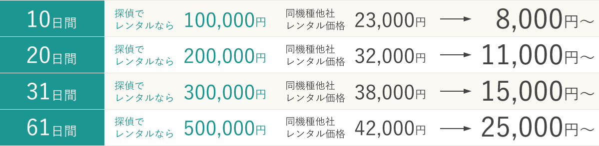 - 業界最安値に挑戦1日当たりの利用料金は最安です。